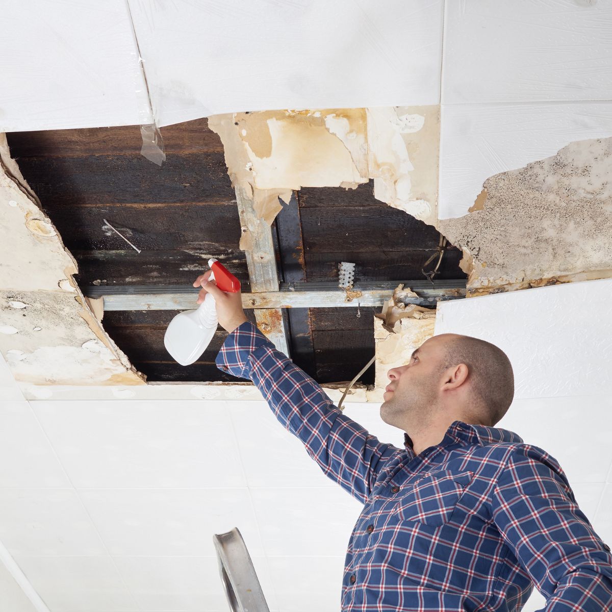 Water-damaged ceiling restoration